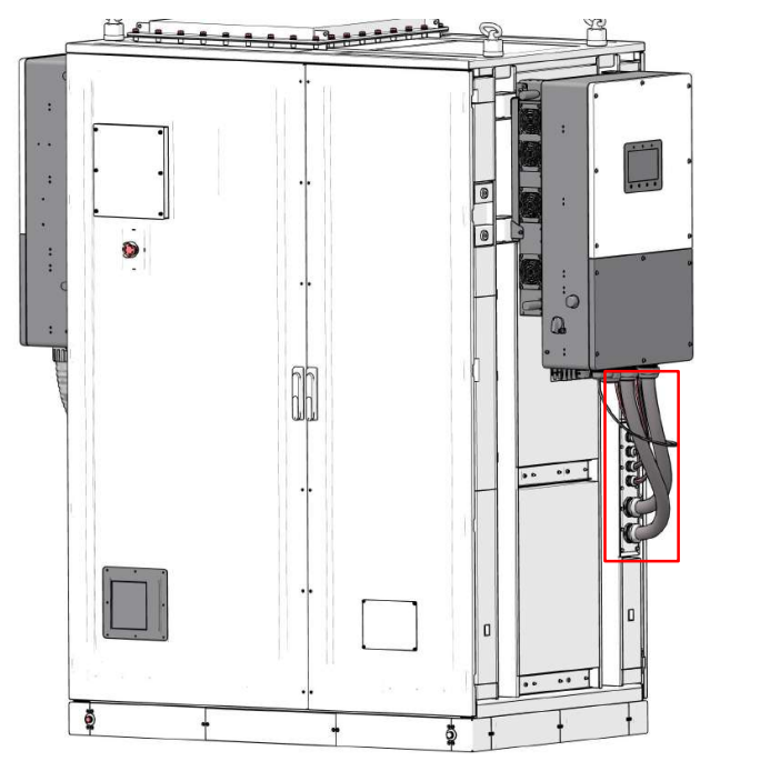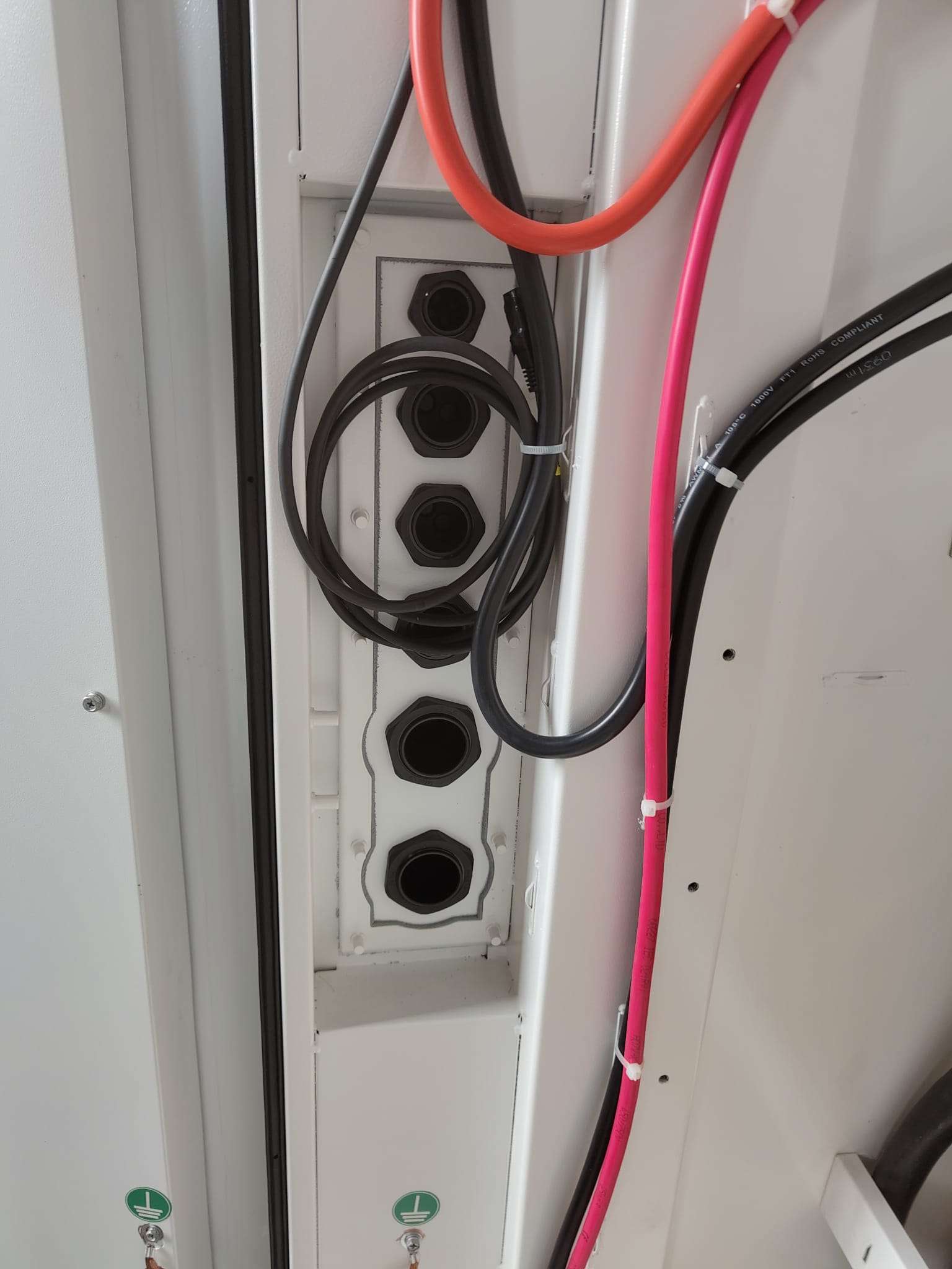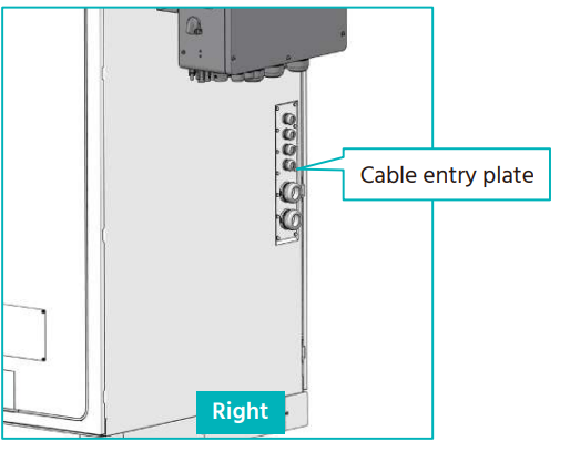 Führen Sie die Stromkabel vom Hybrid-Wechselrichter 1 durch die vorgefertigten Öffnungen in der Kabeleinführungsplatte.