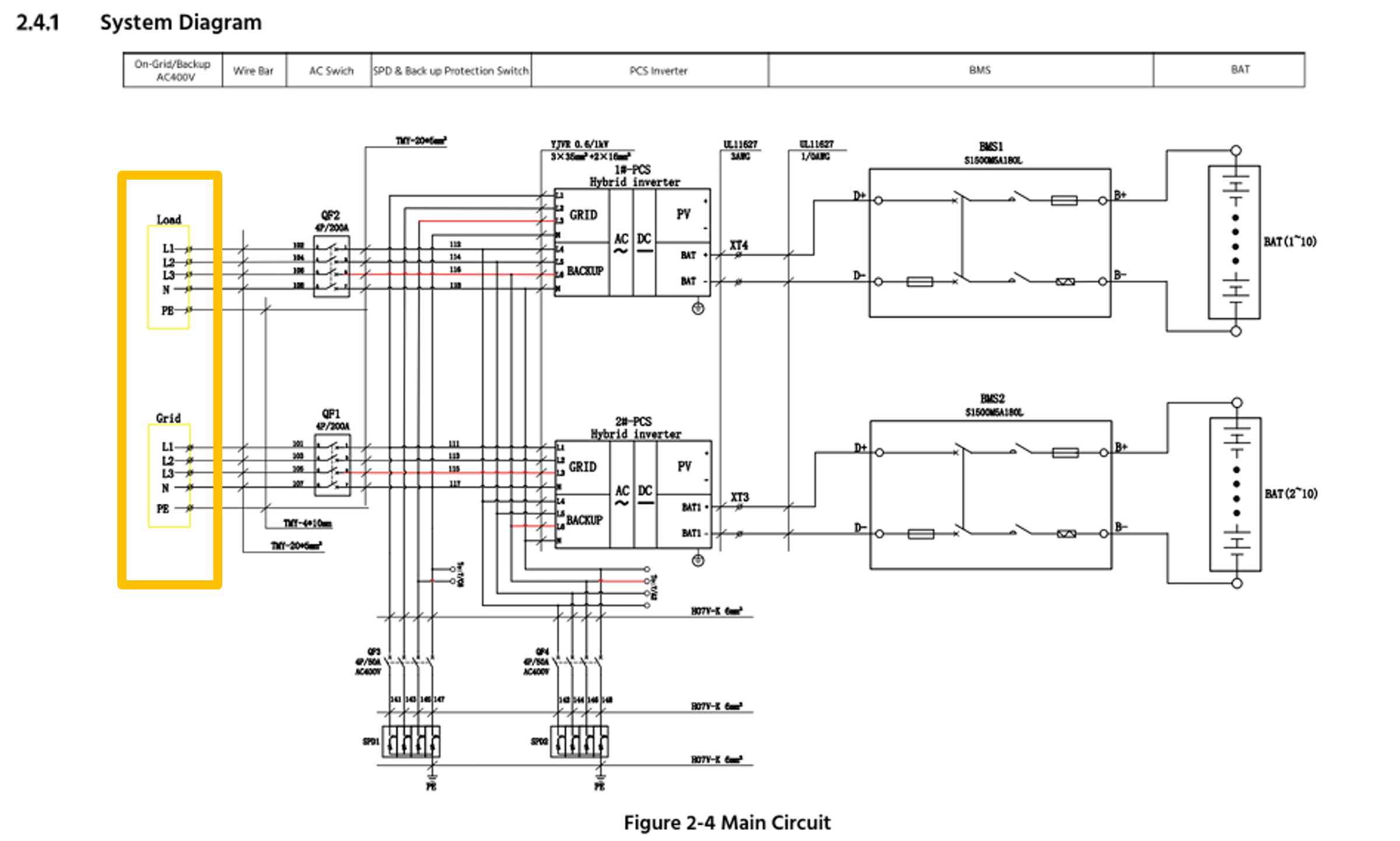 Der Pylontech Speicher A300 wird über zwei AC-Kabel erschlossen.